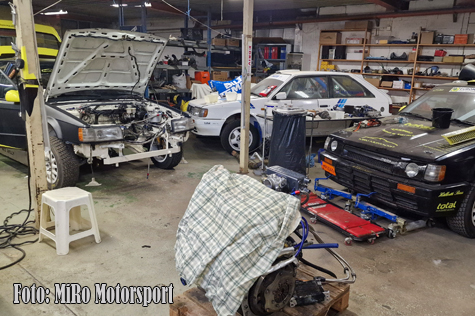 Många bilar i garaget för MiRo gänget och då är alla inte ens med på bild. Få bilar startklara just nu men räkna med ny säsong och sikte på segern i Svenska RallyCupen 2026 för teamet.